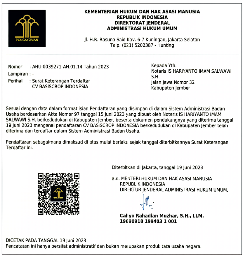 Perusahaan ini dirintis mulai tahun 2022 dan resmi terdaftar di KEMENKUMHAM pada tanggal 19 Juni 2023, dengan notaris atas nama Is Hariyanto Imam Salwawi, S.H Jember.